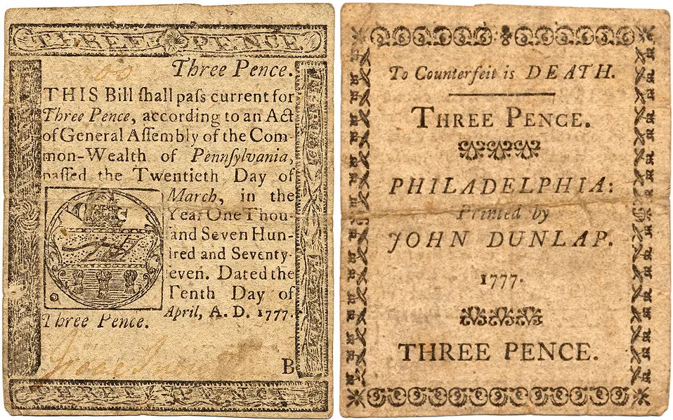 The Declaration of Independence officially freed the colonies from British monetary regulations, and they began to issue paper money, called Continental Currency, to pay for rapidly growing military expenses. Unfortunately, as there was nothing to back this currency, it became worthless by the end of the war.