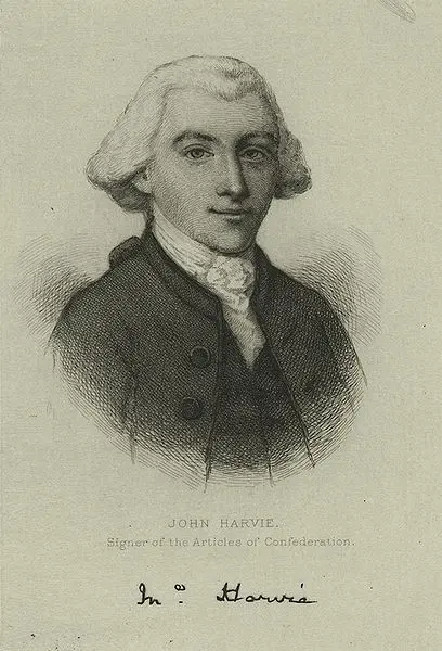 John Harvie was a boyhood friend of Thomas Jefferson and his father (also named John Harvie) became Jefferson's legal guardian after the death of Peter Jefferson (Jefferson's father) in 1757. Harvie was an American lawyer, builder and politician who served in the Continental Congress from 1777-1778. After 1778, Harvie worked as a purchasing agent and helped supply the Virginia militia and Continental Army. He died in 1807 after falling off a ladder while inspecting one of his building projects.