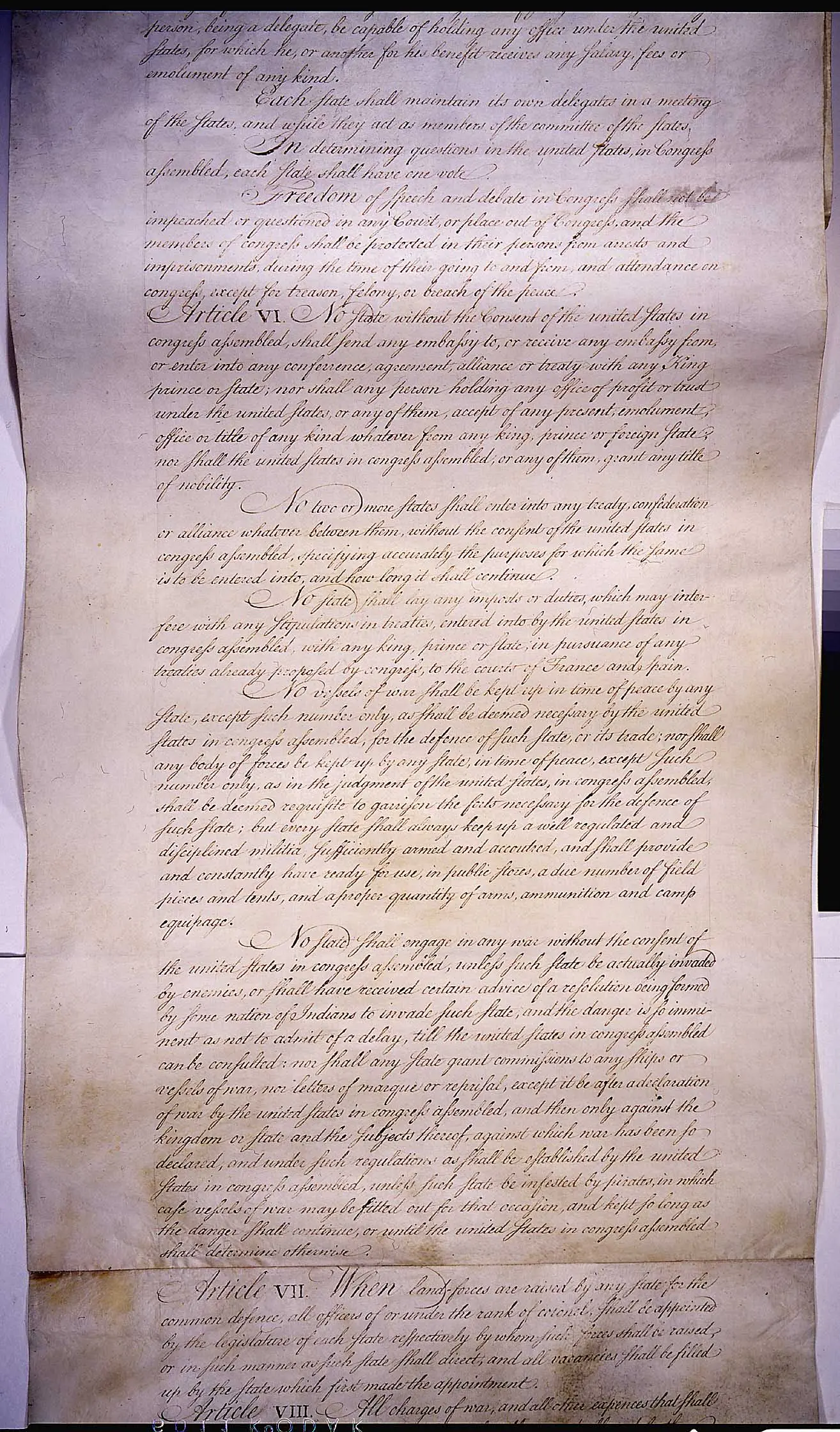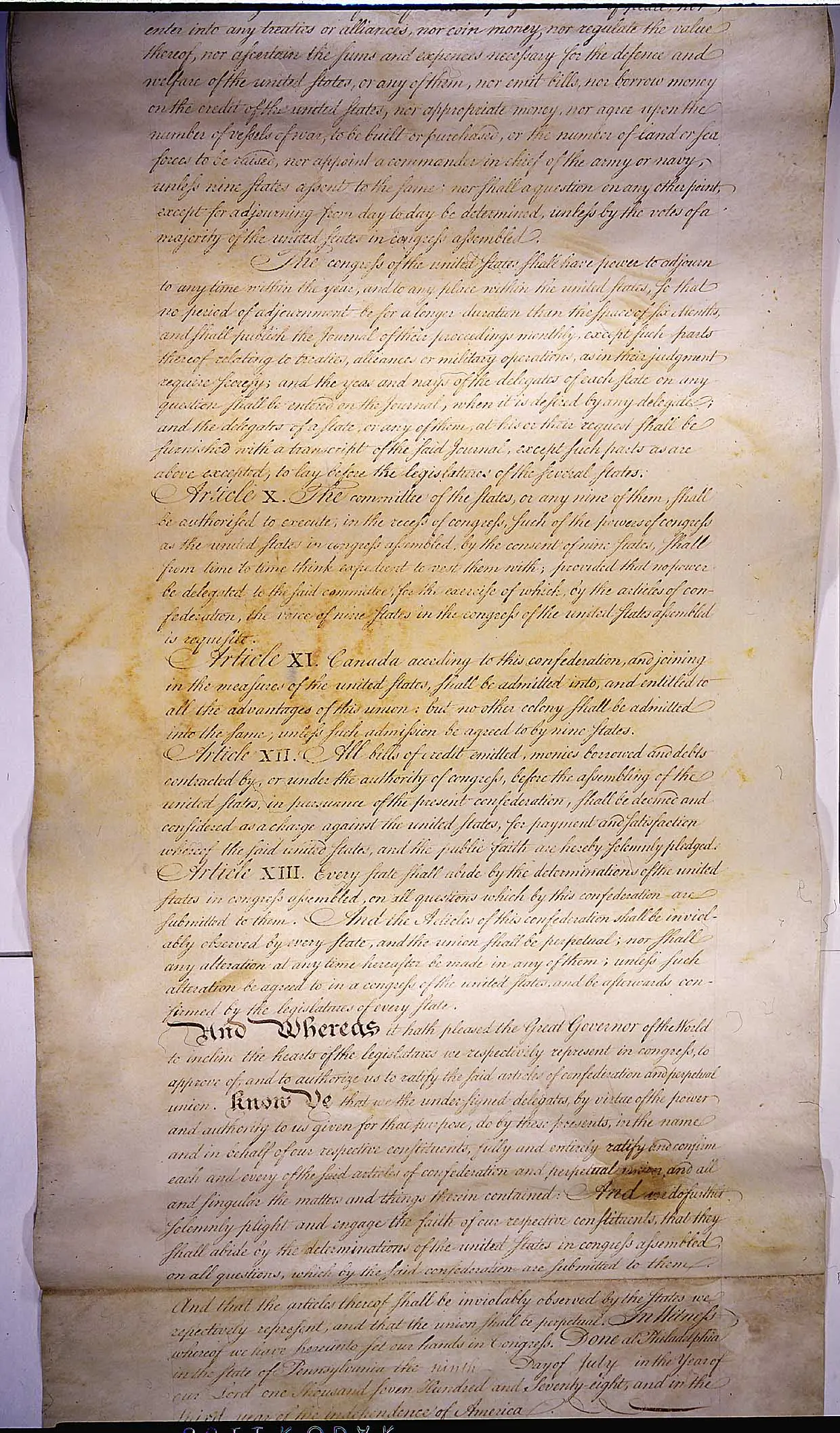 Agreed to by Congress 15 November 1777In force after ratification by Maryland, 1 March 1781
