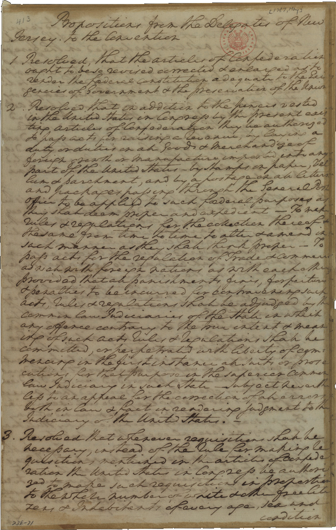 *Image of The New Jersey Plan courtesy of the Library of Congress under the Open Government License.
