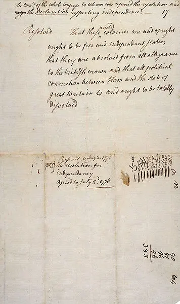 The Lee Resolution, also known as the resolution of independence, was an act of the Second Continental Congress declaring the Thirteen Colonies to be independent of the British Empire. Richard Henry Lee of Virginia first proposed it on June 7, 1776. It is the earliest form and draft of the Declaration of Independence.