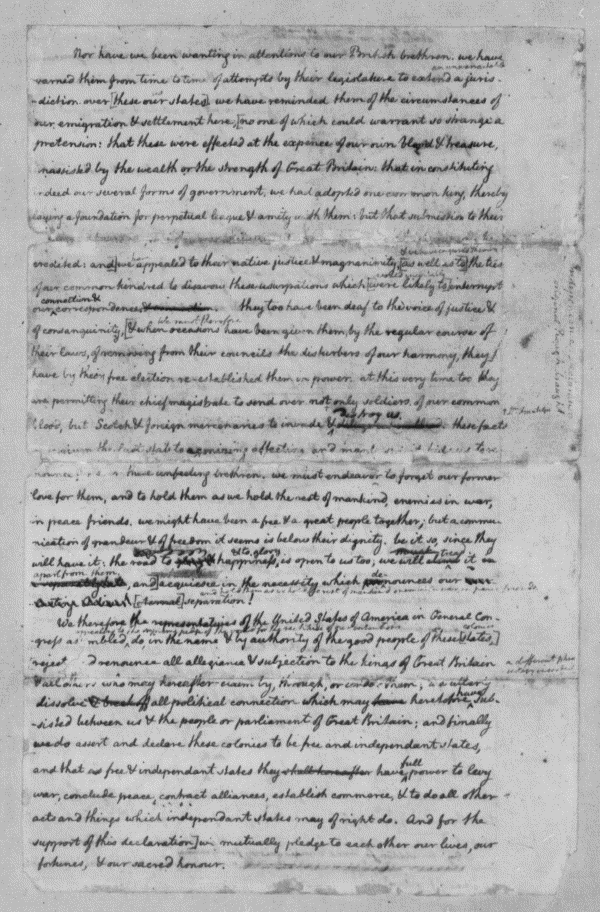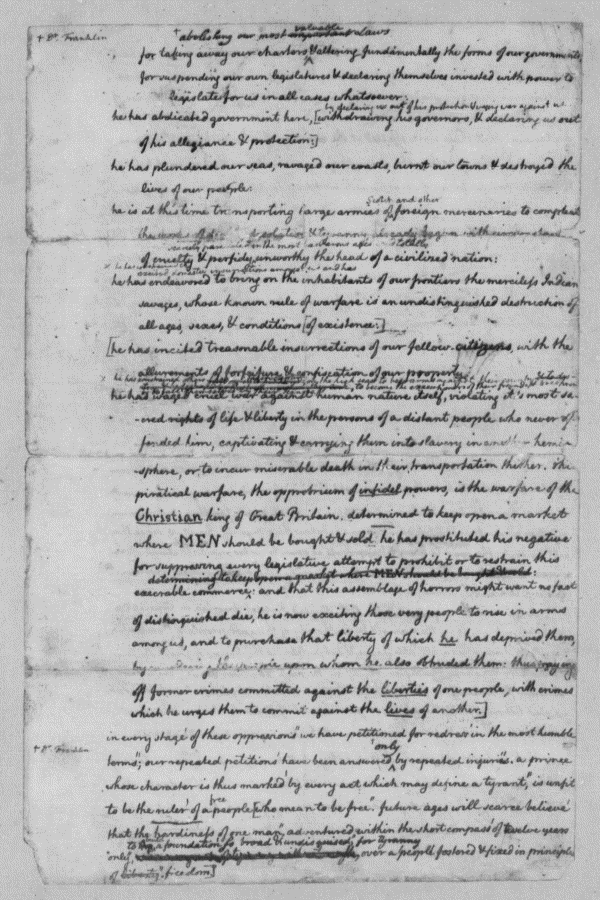 Portrait of Jefferson courtesy of Wikimedia Commons under the Creative Commons Share-Alike License 3.0. Images of the drafts of the Declaration of Independence courtesy of the Library of Congress under the Open Government License.